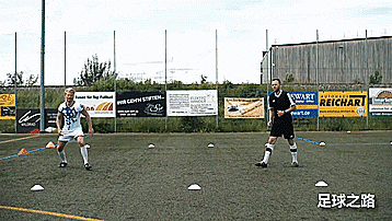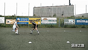 还有就是准备突破时速度过慢,很多小伙伴甚至将球踩停,然后再开始过人,在我们没有绝对爆发力的情况下,基本很难完成突破,所以不要降速,这时我们可以不触球和少触球,用小碎步调整跟上球速,然后做动作完成过人。