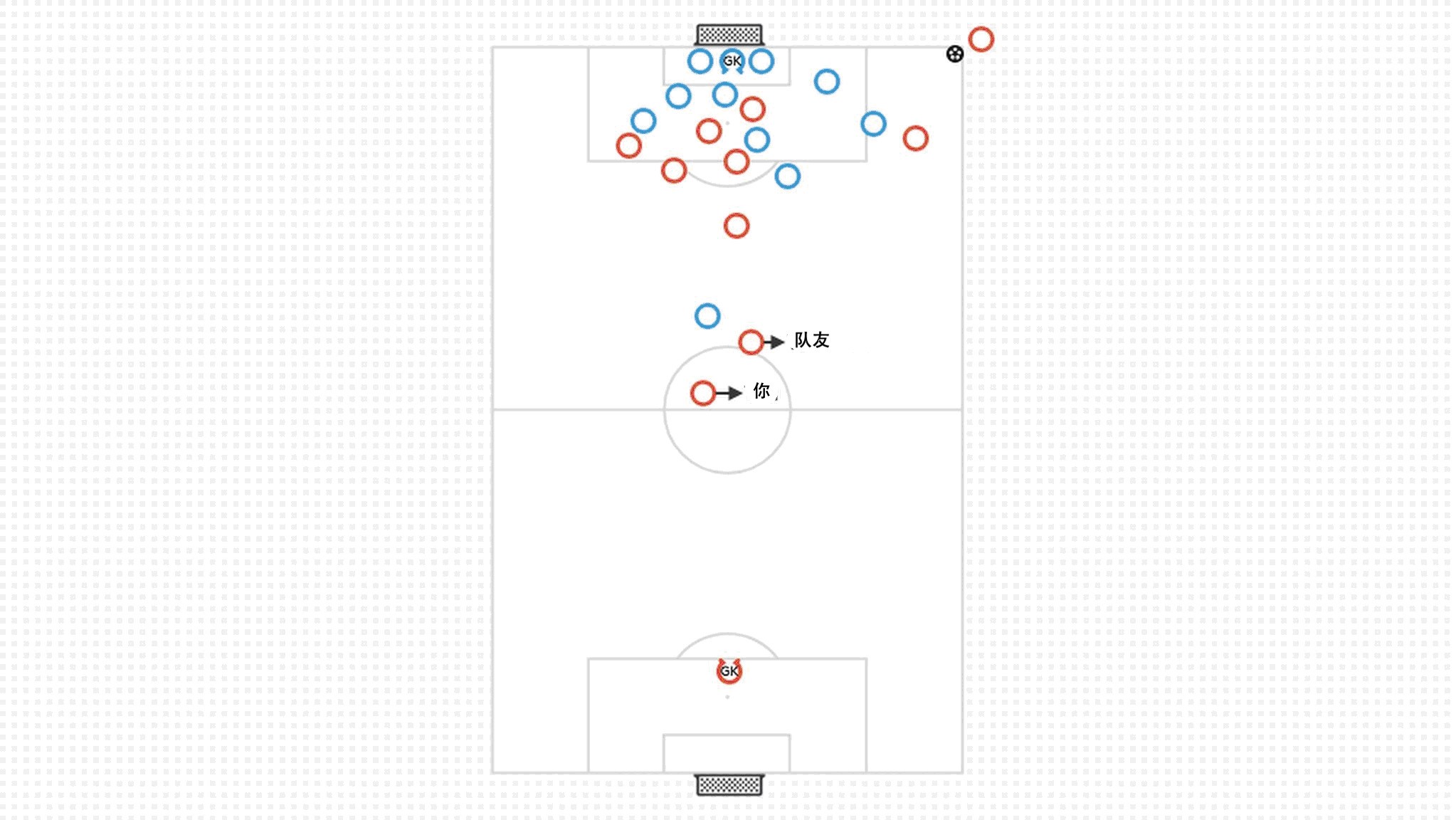 1.你方获得一个角球,你和队友的任务是防范对手打反击。