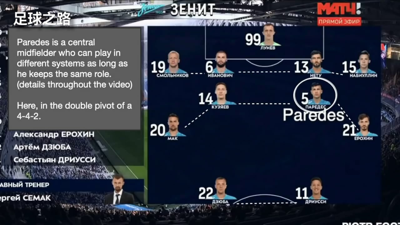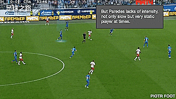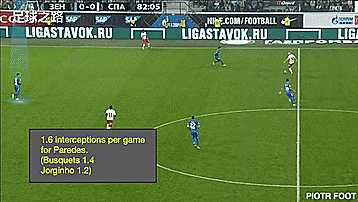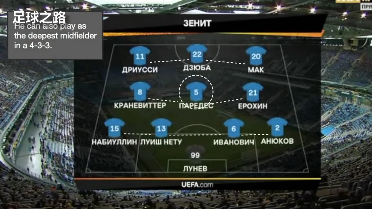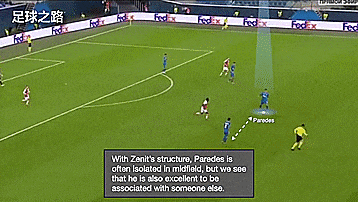 当泽尼特排好阵形准备出击的时候,帕雷德斯坐镇拖后组织,就像传统10号一样传球,可以不断发现正确的空间。