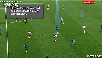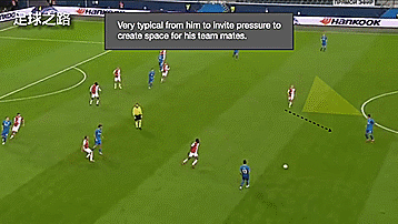 也常会回撤到两个中后卫之间拿球,非常典型的一种模式,作为拖后的中场他更喜欢在自己的位置,而不是在防线间。