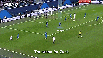 现在泽尼特攻防转换,一记绝佳的传球,瞬间让队友在前场形成2v2。