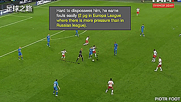 他在中场跑动也不多,转会到俄罗斯以后,他有点变懒了。