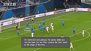 在防守定位球的时候,他的空中技术一般,所以一般会站在前门柱的位置。