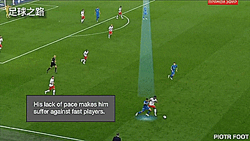 他速度不行,使得他在对抗速度快的球员的时候很吃力。
