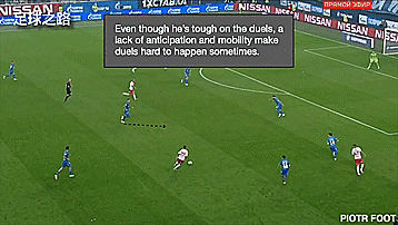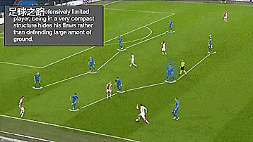 和其他防守缺陷的队员一样,阵型的紧凑型掩盖了他们的缺点,在大范围内他的防守缺点便会暴露无余。