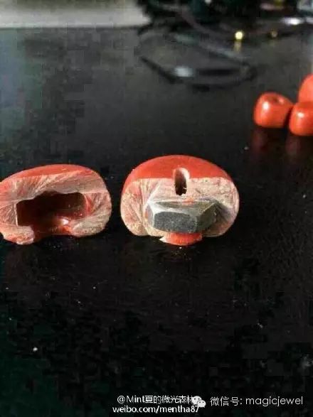 南红的真假小鉴别:因为南红的价格一直在上涨,又是收藏界的大热门,现在市面上也出现了很多南红的假货。比如我曾经在微博上发过一个南红造假的图片: