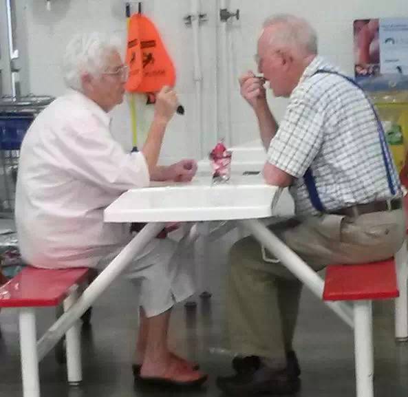 14、两个人一起享受着夏日的清凉,你一口、我一口,乐此不疲!