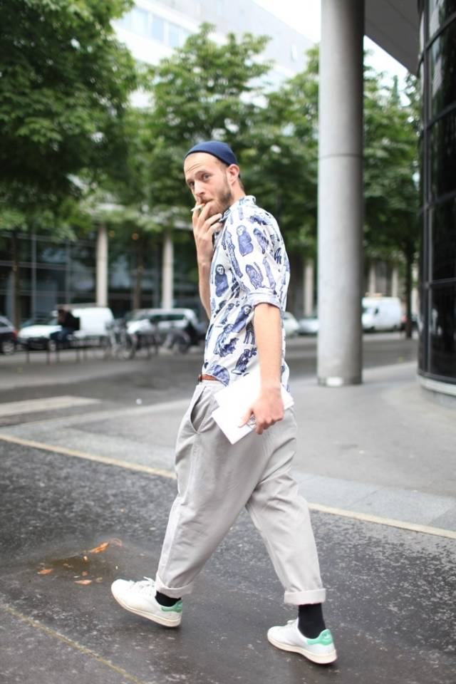 请记住,正装羊毛西裤、直筒裤、喇叭裤、阔裤腿等,一律不适合卷裤腿!如果想把裤腿卷起来,并且好看,你一定要选择裤腿较窄的,这样的裤子卷起来比较有型,否则一个阔脚裤你还拿来卷裤腿,让人立即想起打鱼的。