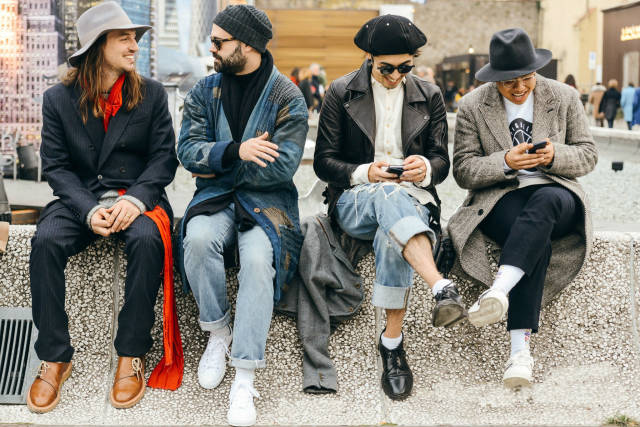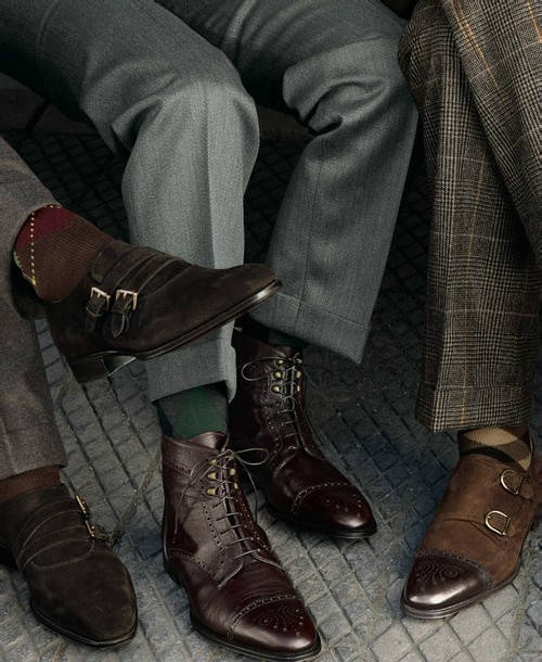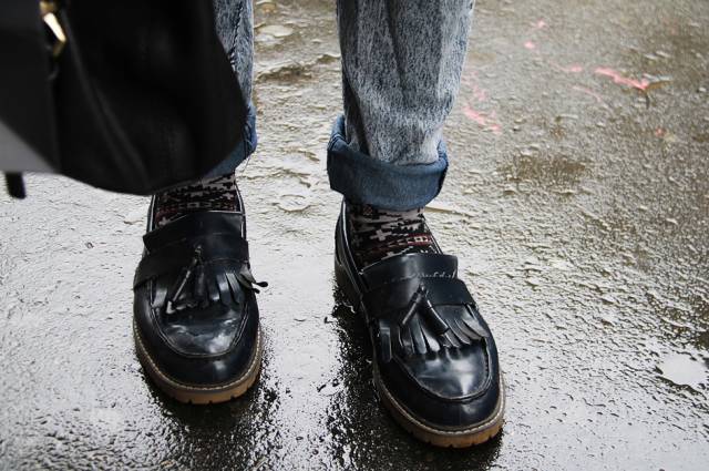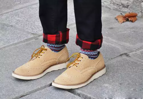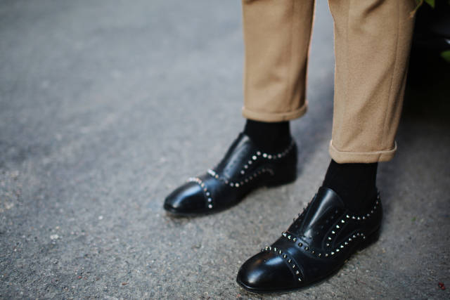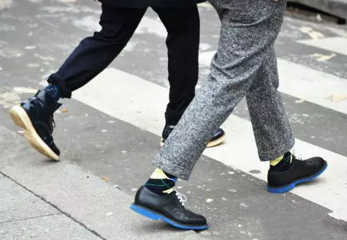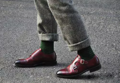 穿不穿袜子?这个问题很难回答,也很容易回答。为什么呢,因为这个事儿没有绝对,没有规律可循,所以要根据个人喜好来定。但为什么说容易回答呢,你没看见有些人数九寒天的还光脚穿鞋,还把裤腿卷起来,露出白生生的一段脚脖子,惊恐呀!为了拗造型无所不用其极,也是够了!至于穿什么袜子,我建议穿黑色的或者色彩较为暗沉的袜子,当然,那些花里胡哨的袜子也不乏暗暗的骚气,穿它,要有足够的心里准备。