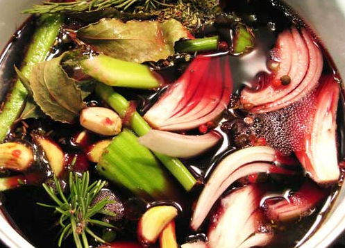有海鲜,还得有肉吃。红酒内含有单宁,可软化脂肪,在烹调猪、牛等肉前,先用些红酒腌渍,去肉类本身骚味。建议红酒浸泡时不要加入调味料,先用红酒腌渍,才不会让肉质变硬。