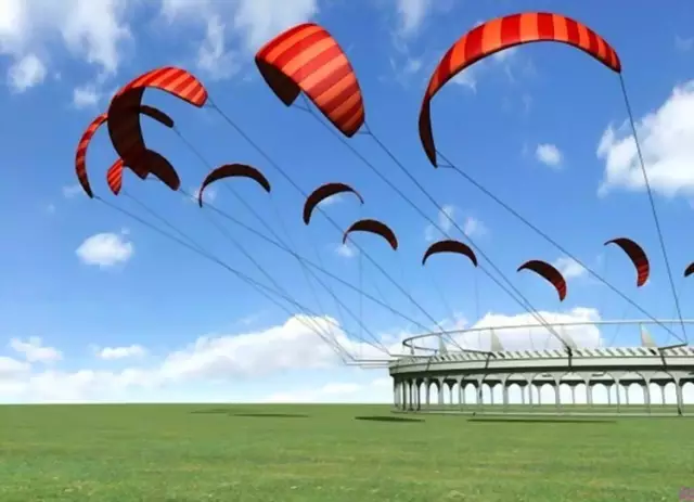 之前的风车和后来出现的风电场都利用风能发电。风越大,涡轮机转化出的能量就越多。但问题是,建造几百米高的传统风力涡轮机会消耗大量金钱与时间,同时还会面对某些社会障碍。有许多地方的居民对远远就能看到的发电塔表示不满,因为它们有碍观瞻。