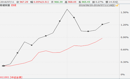 4、稳健股基(分级A指数)自6月27日以来上涨0.6%。在债市说反弹就反弹,并且涨得不亦乐乎之际,分级A “债性”魅力爆发,引爆这波行情。