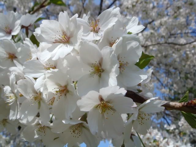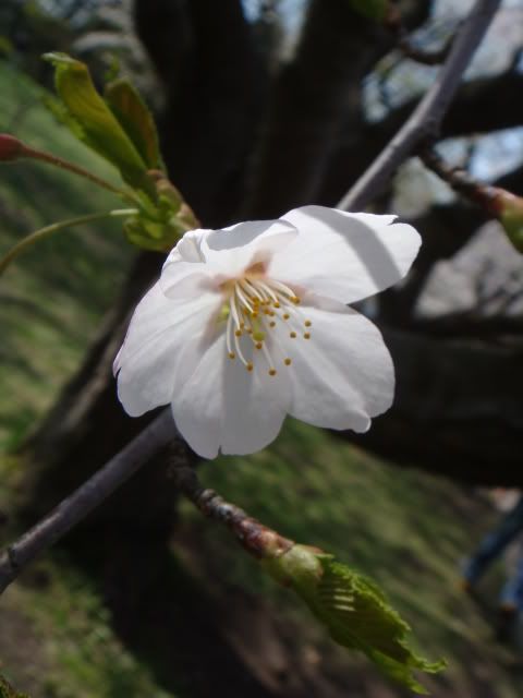 但这里的樱花的种类跟平常电视里看的不太一样,偏白,只有在远处看才能看出微微的粉调……