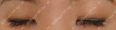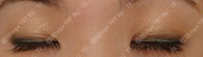 反正是金色的打底,橘色的画眼窝,绿色的画眼折里面,用了黑色眼线胶,眼线后半段盖了mac绿色的炭精笔,显光泽。