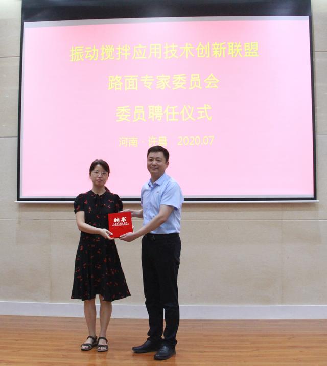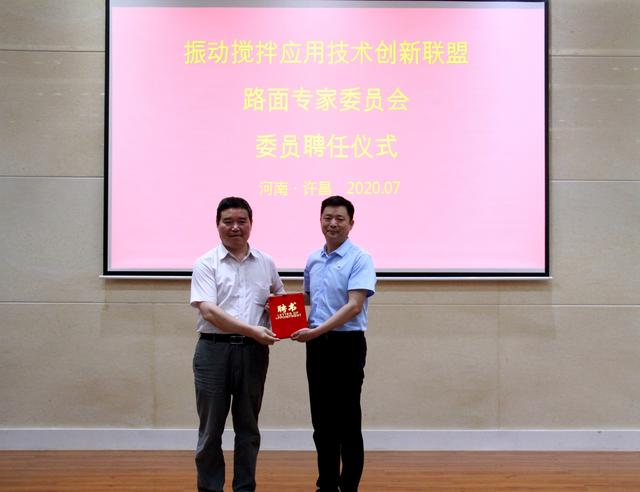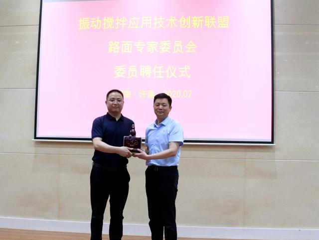 7月7日下午,许昌德通振动搅拌技术有限公司报告厅内洋溢着祥和欢乐的气氛,河南万里交科集团董事长、“振动搅拌应用技术创新联盟”理事长张良奇向长安大学王选仓等三名教授颁发了“振动搅拌应用技术创新联盟路面家委员会委员”聘书及印鉴,这标着以振动搅拌为核心技术的许昌德通公司再添科技重力。