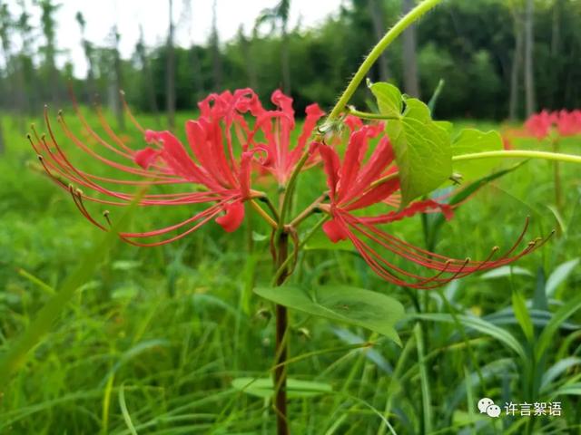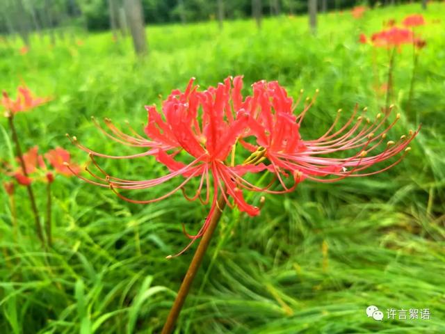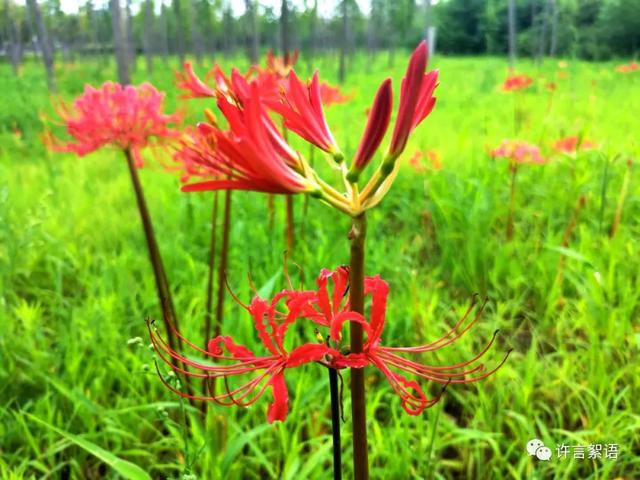 稀奇的事儿,吸引了我们。到现场去看了,听了村民们有点夸张的叙述后,请来了林业部门的工作人员到现场鉴定,结论是:彼岸花,也就是我们通常所说的石蒜。