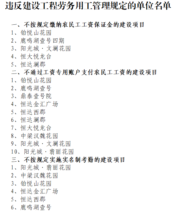 许昌21家单位被列入违反建设工程劳务用工管理规定名单