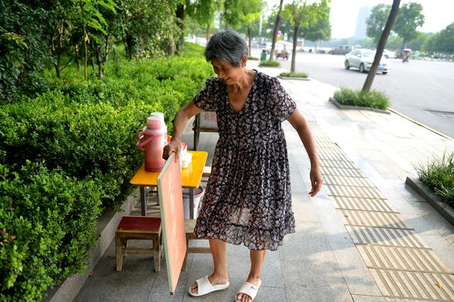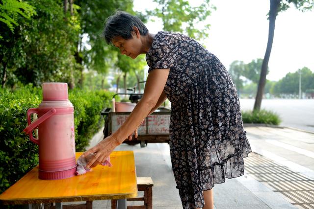 “孩子们都大了,我不打牌,在家闲着也是闲着,烧几瓶茶水方便群众,不比啥也不干强?”段守兰说,他们这一代人曾深受雷锋精神影响,能够为人民服务,每天心里都很舒坦。早上将茶摊儿摆好后,段守兰会回到家里洗洗刷刷,做些杂活儿。一天下来,她感到很充实。
