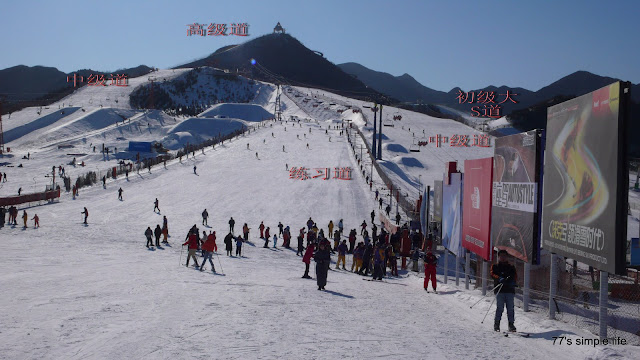 两天当中,我都是最后的时间才敢跑去中级道。要是按照我自己的想法,其实在初级道慢慢滑S型也很不错。不过Tony一直教育我说这样没办法提高,继续在初级道是浪费时间。只可惜我天生胆小,上中级道还是很需要积累些勇气的——在底下看着不高,真的站到中期道起点心里还是忍不住要发怵的,感觉那个陡坡简直就是不可逾越……
