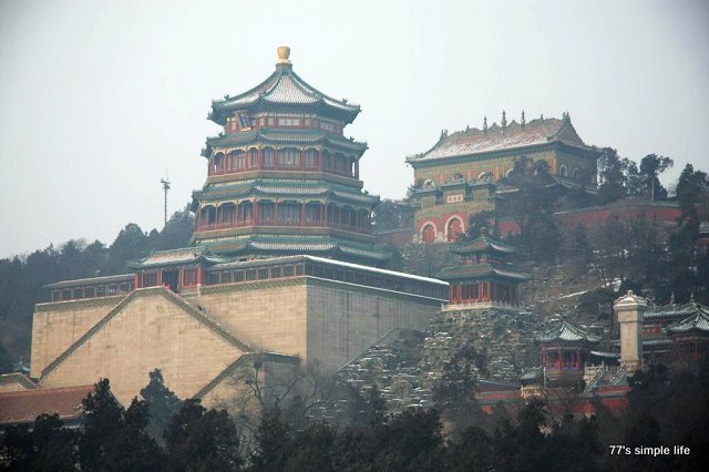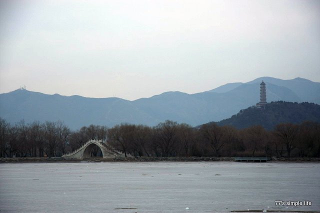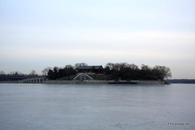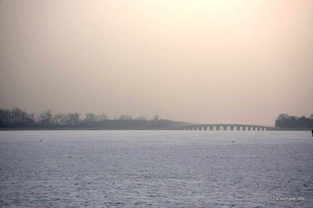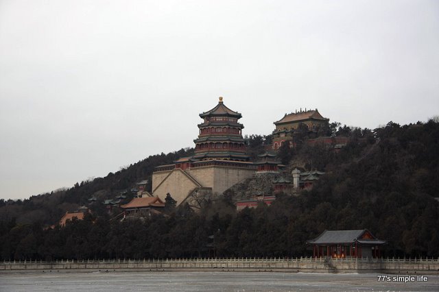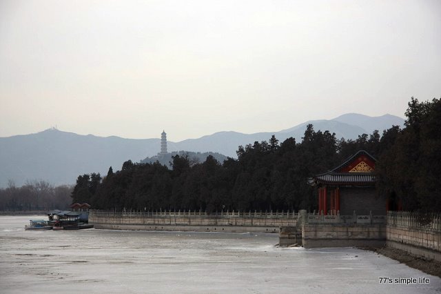 下午时雪停了,能见度好一些,这是站在湖上拍的万寿山。