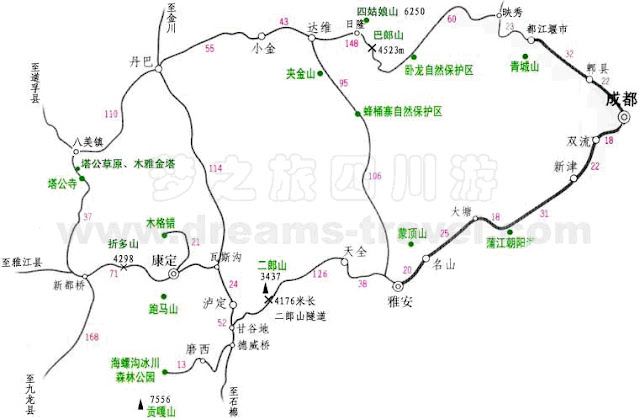 【全程线路】:成都—雅安—天全—甘谷地—泸定—康定—新都桥—塔公镇—八美镇—塔公镇—新都桥—康定—泸定—甘谷地—天全—雅安—成都(全程:公里)