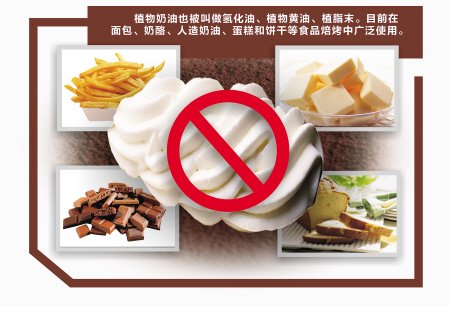 其实,所谓的人造奶油又叫植物奶油、人造黄油、玛琪琳、麦琪林等,它是将植物油部分氢化以后,加入人工香料、防腐剂、色素及其他添加剂等模仿黄油的味道制成。食用后会产生反式脂肪酸,在人体内完全不被接受,长期超量积累会诱发肿瘤、哮喘、2型糖尿病、过敏等疾病,孕期妇女会影响胎儿体重等发育指标。