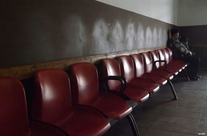 候车室里椅子后方的墙面,是人们存在的痕迹。