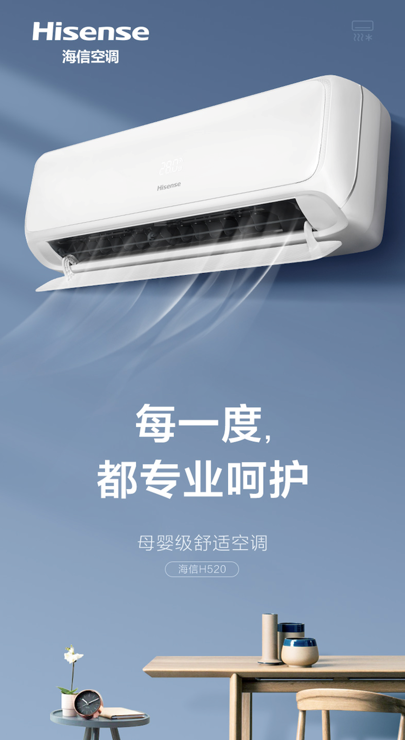 海信空调一直坚持原创科技,在新的冷冻年度,以新风、大风量、智能技术布局全系列产品。