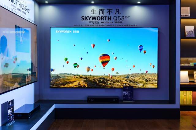 同时创维也在巨幕电视这一领域持续发力,在本次品鉴会上推出100吋巨幕产品100Q53,以及展示90吋可轻松入户的巨幕电视产品90A23。当前电视行业焕新升级背景下,巨幕电视的需求强劲增长。据奥维云网(AVC)数据,今年上半年75吋以上超大屏产品全面增长,销售额市占率达35.91%,同比增长13.92%。