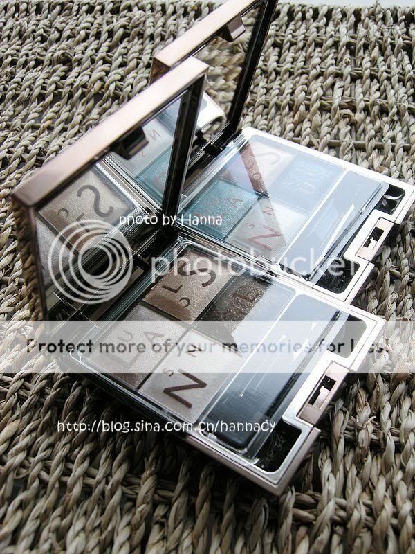 确实感觉到了水景系列粉质的进步:摸起来是细细绵绵的,甚至有点creamy,飞粉程度有所降低。这一盘虽说属于日系眼影里万年不歇的大地色类别,但它有趣的地方在于——左边冷调,右边暖调;冷而不脏,暖而不黄。