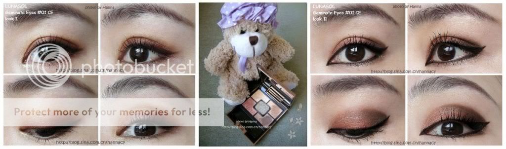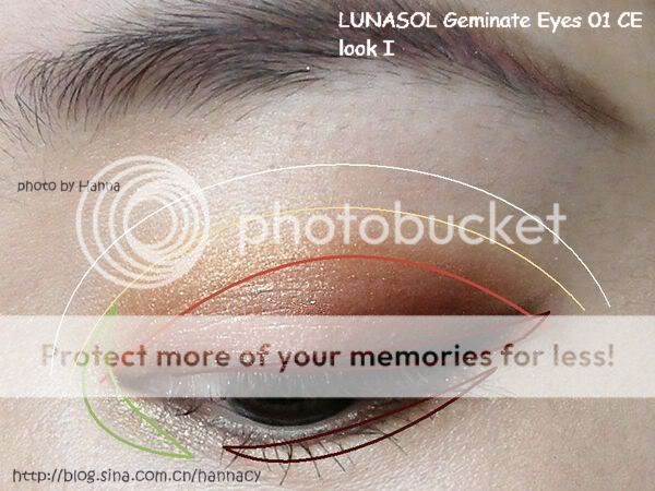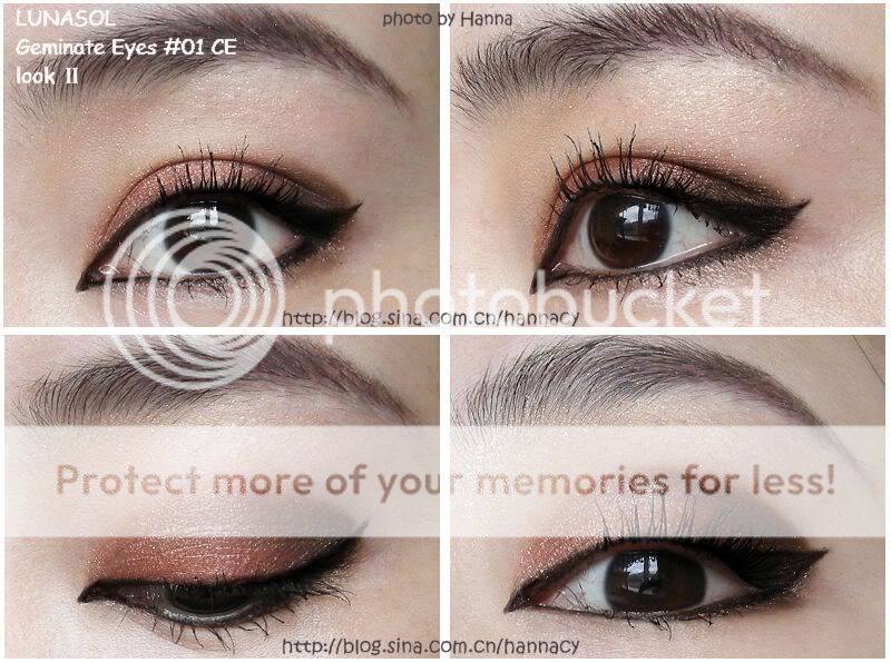 其实木有这般闲情雅致去专门过节,嘻嘻,所以纯粹应个景,发一发用LUNASOL猫眼石(双魅#01)画的两个眼妆。