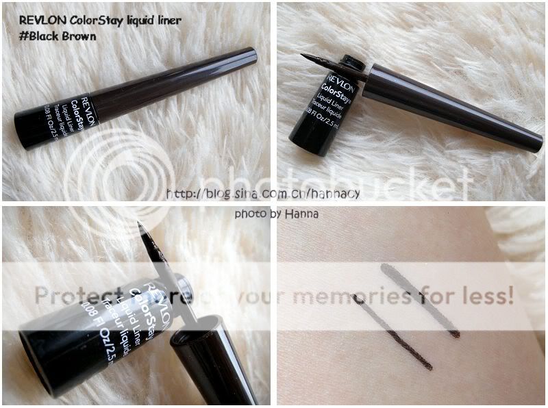 对了,画这个眼线我用的是露华浓不脱色系列的眼线液(REVLON ColorStay liquid liner),色号是深棕色(#black brown),不是纯黑色。 我觉得深棕色更好看,也更实用。 这支眼线液我已经回购过两次,真的很好用~