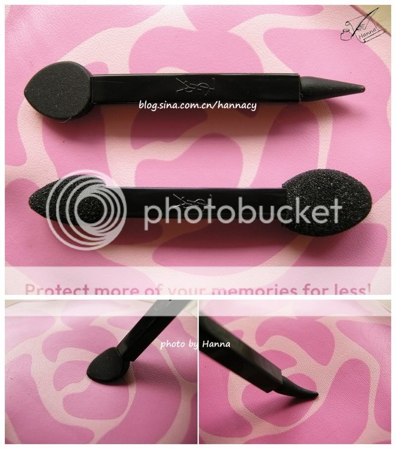 哦对了,因为是干湿两用这种'新型概念'的眼影盘,还不得不提一下它的小刷具!除了常见的海绵眼影棒以外,还有个两头都是橡胶质地的眼影棒!一头桃形,一头尖,太可爱啦!看最下面受按压时候的模样儿,很Q吧?