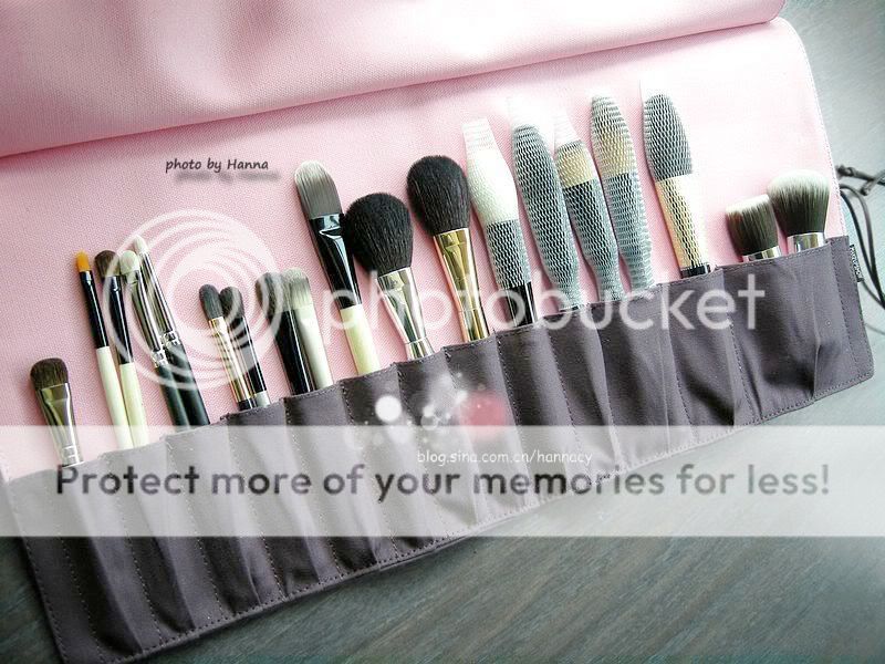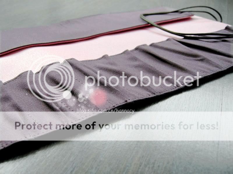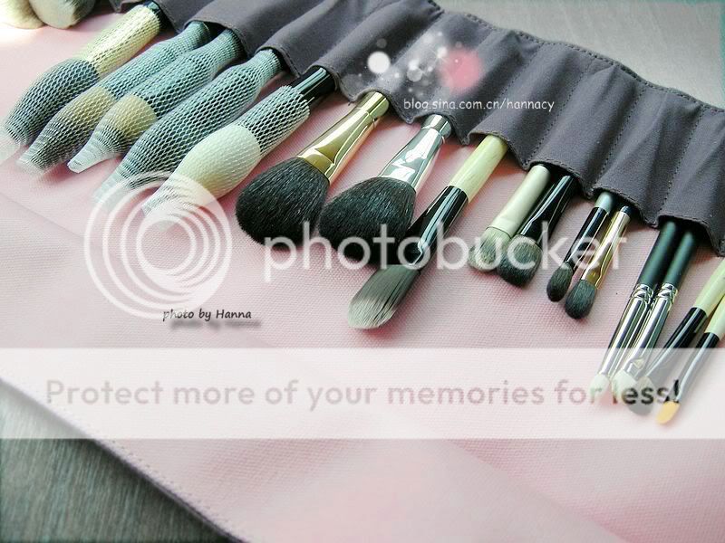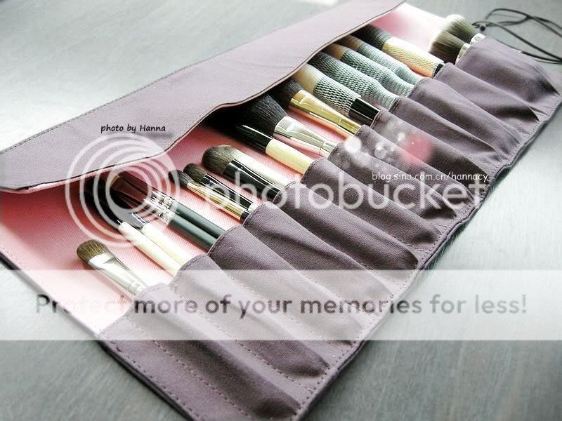 到现在我只留有一个TheBodyShop的老款刷包,说不上多爱,但至少喜欢它的面料——不是皮,而是布!皮刷包以前用过,大夏天的时候,也许加上保存地方不够好吧,皮刷包竟然粘住了刷杆,把几支心爱刷子的logo都粘糊了,