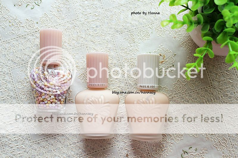 上图,粉色盖子这瓶,是Paul & Joe经典的搪瓷隔离,畅销n年。