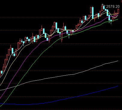 60分钟上看,最近四根K线在筑一个平台。K线的重心在同一水平线上。老炼认为,这个平台之所以构筑,应该是为了大盘能冲击250小时均线,目前点位在2595点一带。中短期均线较为扩散,5和10小时均线平行向上。这是因为,近期K线缓步上行,20小时均线迅速赶上,而30小时均线,则迟疑得多。因此,这二条均线走得不好。另外,120小时均线目前已经开始要慢慢向上。只是250小时均线目前还是强劲向下的。这条均线运行得太慢了,短时间内是不可能走好。老炼说过,K线回抽到120小时均线这里,是必要的。但在这之前,K线是有能力先攻击250小时均线。由于它是强劲向下的,因此,K线在这里难以站稳。会有回落。之后,应该是在120和250小时均线之间震荡。KDJ连续在高位,没有彻底修复过,MACD的红柱在不断缩短。目前,我们仍是以小周期大盘为主要参照对象。他们的趋势没有改变,均线系统没有完全成空头,大盘就不会在短时间内出现大的调整。但由于大盘连续上涨,短时间内也在积累做空动能。目前的强势,包括今后一段时间的强势,是以前大盘连续下跌的结果,而本周连续上涨,又为会最近一段时间的一次剧烈震荡,埋下隐患,操作上,对于没有连续大涨过的,在30天均线附近的个股,可以持有为主。中线思路者,则可以不必太在意短期的波动,因为我们说过,调下来,还是会上去的。