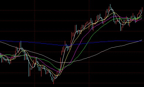 下面看看短线技术指标,来分析一下明日大盘的运行情况。上周五收盘时,五分钟的均线有些扩散,我们提示过,强势前提下,这K线来个横盘,这样可让均线靠拢。而MACD在红柱消失后,也会因此而出绿柱,KDJ也能稍稍修复一下。今天大盘确实是采用强势修复法,目前20X5和30X5水平运行,另二条短期均线向上,但像一朵花一样,一条朝东,一条朝西,明天肯定是还要修复。而120X5已经上穿了250X5,我们比较重视这一步。这样,这二条均线有条件再走多头排列。维护着中短期均线不断向上。长期均线如果扶持中短期均线,那威力是相当强。我们近期提示过,大家也见识过。如下图所示: