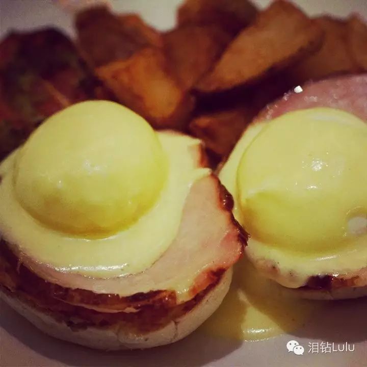 点了最爱的Egg Benedict,Egg Benedict好不好吃全靠浇在蛋上面的酱汁。 palm court的EB过关。