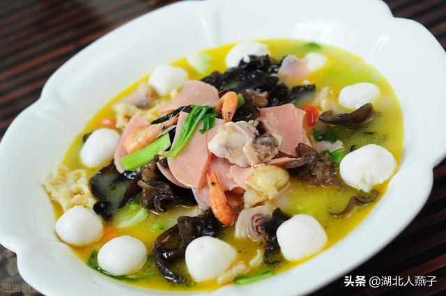 烩三鲜是陕西风味的名汤菜。烩三鲜是以鸡胗,鸡肝,肉丝,鲜虾等食材制作而成的汤菜。烩三鲜是炖煮而成的。烩三鲜这道汤菜在当地的各种宴席上都会有这道菜,非常受到当地人的喜爱。烩三鲜最适合秋冬季节食用了,暖和又好吃。烩三鲜的口感:汤汁味浓,好吃又下饭。