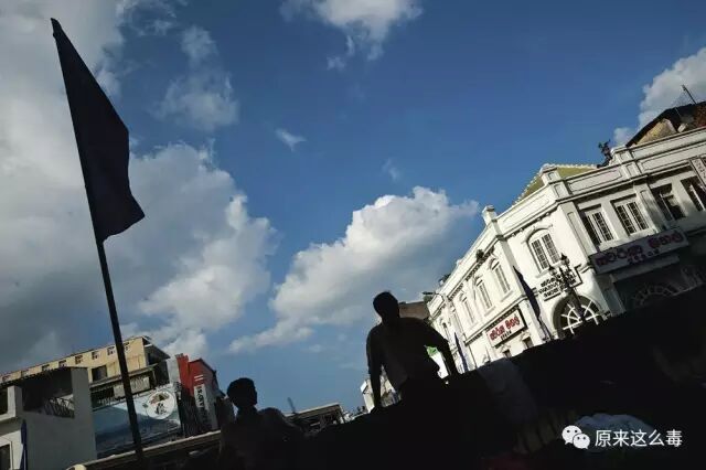 康堤是个非常嘈杂拥挤的城市,大街上人来人往,要拍到构图简洁、主体突出的照片还真不容易。我选择蹲下来低角度向上拍两个路边的小贩,以天空作为背景,画面简洁多了。