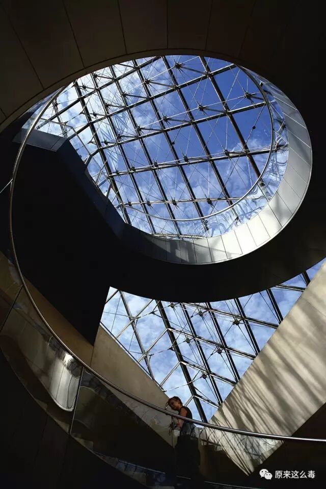 鹦鹉螺身上每圈螺纹的直径与相邻螺纹直径之比也是黄金分割率。所以当我们拍到一些螺纹状物体时也可以应用黄金分割法来进行构图。旋转楼梯的曲率是固定的,但随着拍摄角度的改变,楼梯在画面中的线条曲率还是会发生变化的。我们可以选择合适的角度,让曲线符合黄金分割的视觉效果。