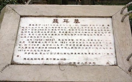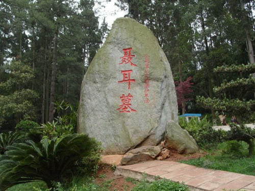 聂耳原葬在高至华亭寺之间公路西侧上方,墓系青石镶砌,简单朴素,有徐嘉瑞撰写的碑文。1954年,人民政府进行培修时,由郭沫若重撰碑文。1980年,根据广大人民群的要求,重建新墓。同年5月13日,迁葬于此。