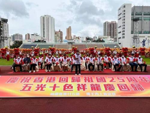 6月18日下午3时,新界社团联会和青晋义工团在香港元朗大球场举行盛大的庆祝香港回归祖国25周年“五光十色 祥龙庆回归”活动启动礼。中联办副主任何靖、创新及科技局局长薛永恒、新界社团联会会长梁志祥、筹委会大会主席赵戎分别为启动礼祝贺,出席嘉宾一齐为祥龙点睛后,宣布“五光十色 祥龙庆回归”系列活动正式启动。