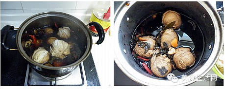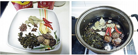 8 调料过一遍水,放入锅内,加足量水烧开煮5分钟。