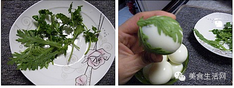 原料: 鸡蛋、香菜叶、茼蒿叶其他小巧精致的蔬菜叶均可