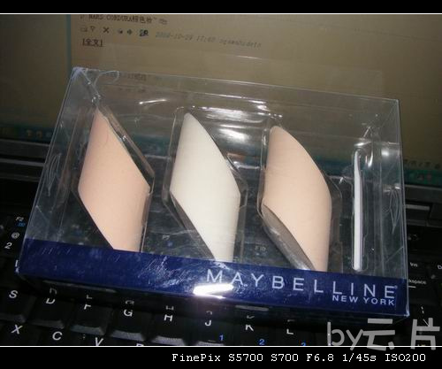 这个海绵,6大米一盒,三块海绵,一根挑棒~其实我不知道我为什么要买啦……我从来不用海绵上粉的……不过很划算是真的咯~