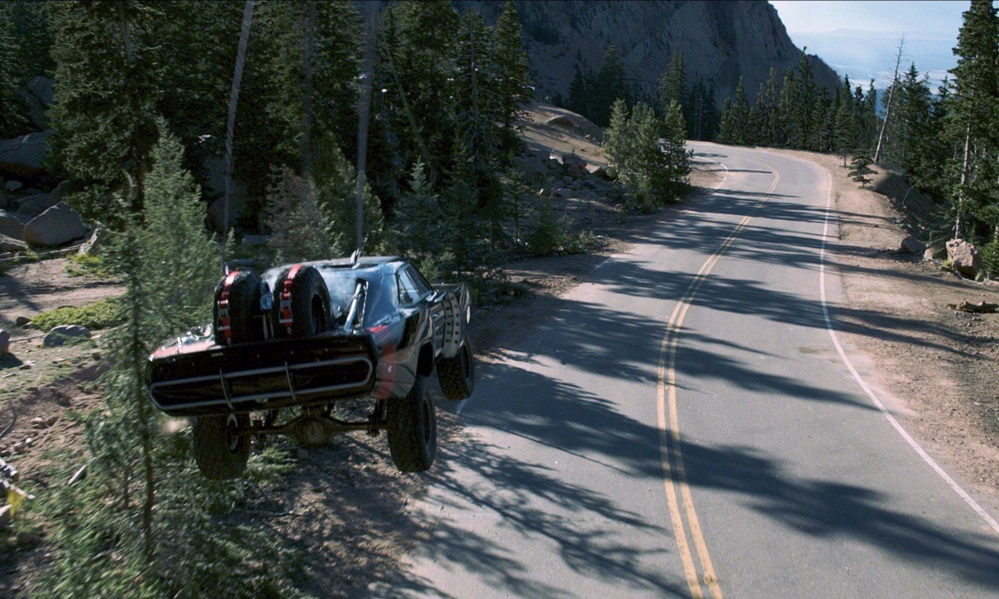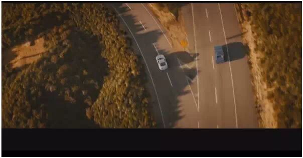 下面的这几张图,是第一次多米尼克和布莱恩飞跃了火车轨道的镜头,最后一次他们俩准备开车上路的镜头和分叉口,各自奔向不同地方的镜头……