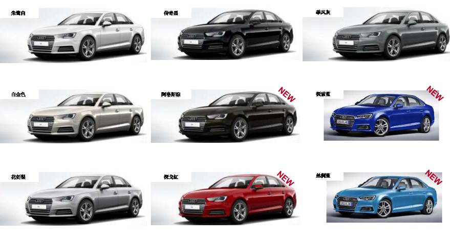当然,全新奥迪A4L的高颜值可不仅仅是外型设计这一个方面。色彩学已经被充分运用到汽车的设计与制造之中。此次全新奥迪A4L带来了9种车身颜色:朱鹭白、白金色、花剑银、传奇黑、阿格斯棕、探戈红、季风灰、探索蓝与丝绸蓝。其中,阿格斯棕、探索蓝、探戈红和丝绸蓝均为新增配色。当然,奥迪一直将追求极致的进取精神视为生命,为了满足拥有更为个性化要求的消费者,全新奥迪A4L还推出了“运动版”和“设计版”配置,同时还会提供高端“S-line”运动套件。