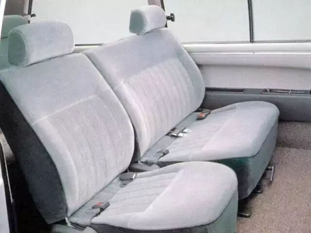 第三排是最传统的3座式长条座椅(Bench seat);第二排有2座和3座的区别,前者的座椅紧贴左侧内壁(当年左侧车门不是标配喔),以便腾出右侧通道供第三排乘客进出,后者则在通道位置追加了一个可翻折座位,是严重超生家庭的最爱。