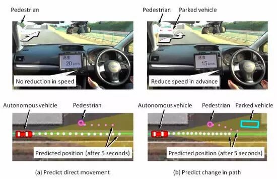 歌乐和日立汽车联合开发了基本的碰撞预警技术,可根据行人的移动实时地快速预判,计算优化速度模式,从而保证安全。该技术的可行性已经被试验证实,可在实际行驶速度下保证安全。